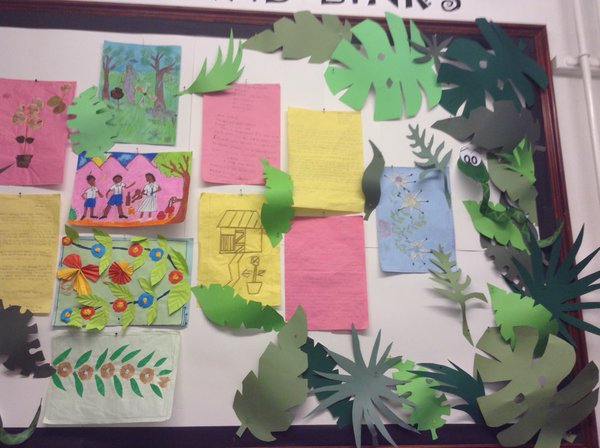 Today we have been working with year 5. During the Easter holidays Miss Cowan visited Sri Lanka where she made links with a school over there. Today we worked with year 5, creating posters to help the children in Sri Lanka learn english. We had to use google translate to write in Sinhalese and then the english version! We had lots of fun!