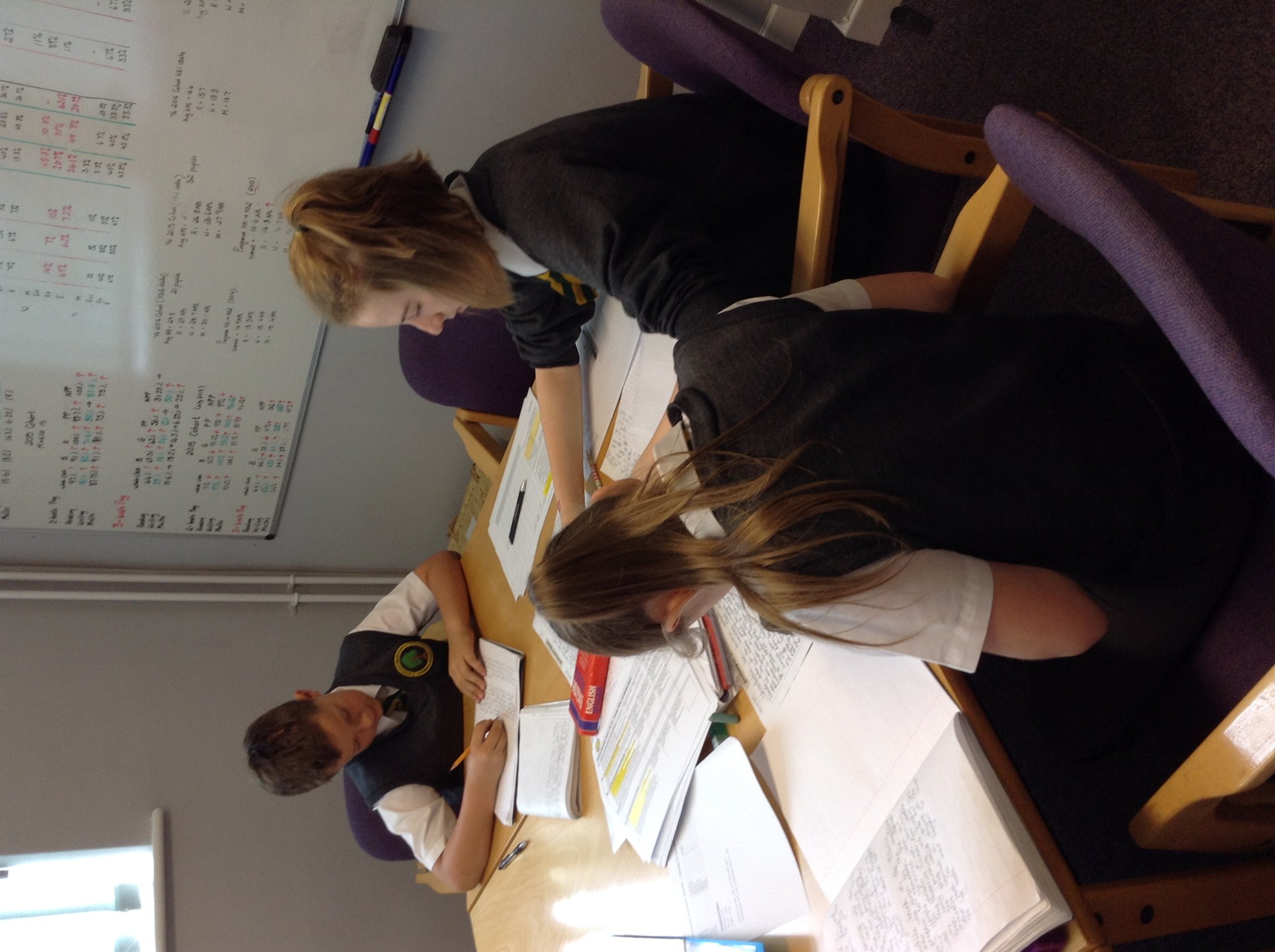 Harry, Laura and Maisy working hard to improve their writing.